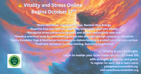 📚 Level One Hybrid Kundalini Yoga Teacher Training (In-person option) – Start Home Study Now! Next Cohort begins October! 🧭 Find My Compass – 90-Day Course (Online, HD & KY) – Ongoing 🧘♀️ Meditation Immersion 2 (Online) – Aug 15–17 🧘♀️ Meditation Immersion 3 (Online) – Aug 23–24 🧘♀️ Online Sadhana – Aug 16, 22, 23, 26, 29 ✨ NEW 🌱Wednesday Online Class 7pm ET – Begins Aug 20 🧘♂️ Mind & Meditation (Online) – Begins Aug 29 🌸 Vitality & Stress (Online) – Begins Oct 17 📚 Level One Hybrid Training (online & In-person option) – Begins Oct 20 🌸 Authentic Relationships (Online) – Begins Dec 12